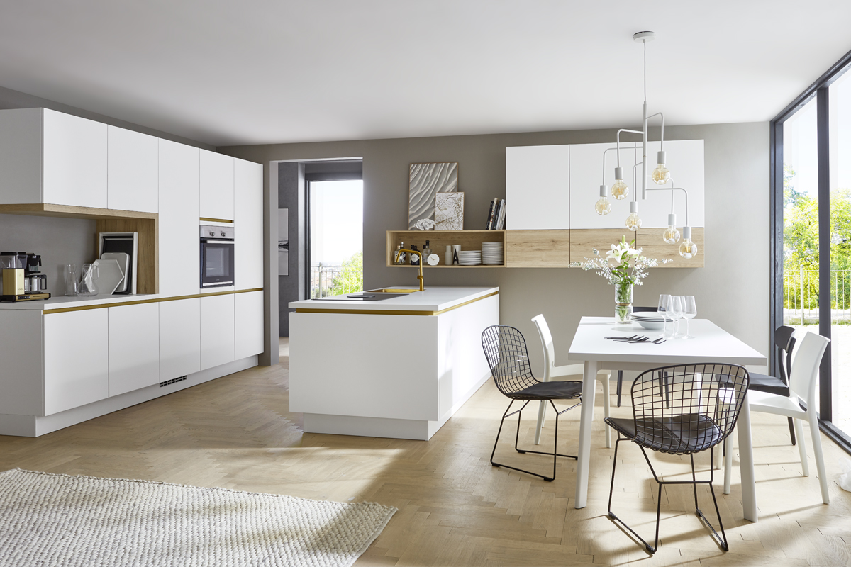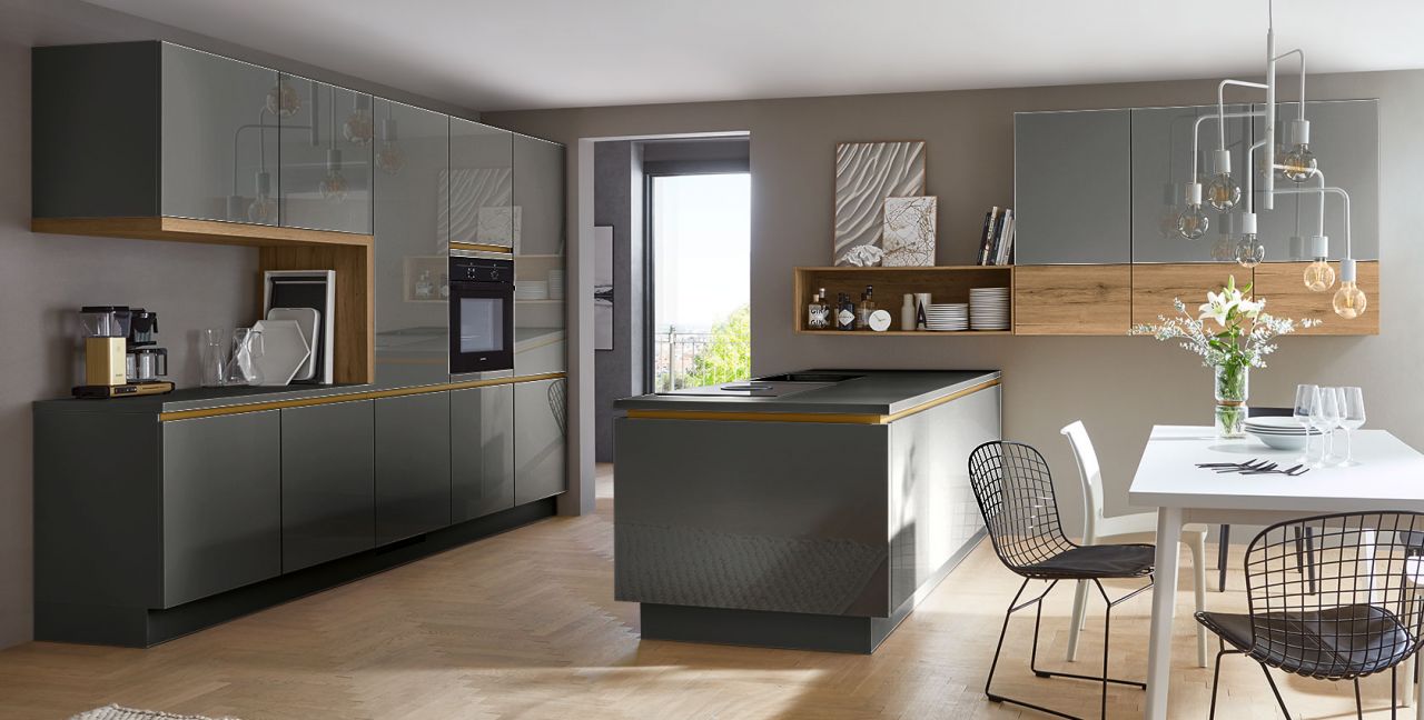 Inklusive Einbaubackofen Neff B64CS71G0K Energieeffizienzklasse A+, Glaskeramik Kochfeld Neff T16SDF9L0, Kühlschrank Neff KU1212FE0 Energieeffizienzklasse E, Geschirrspüler vollintegriert Neff S157ZCX01E Energieeffizienzklasse B, Einbauspüle Edelstahl Teka Flexlinea, Wandschrankregal.