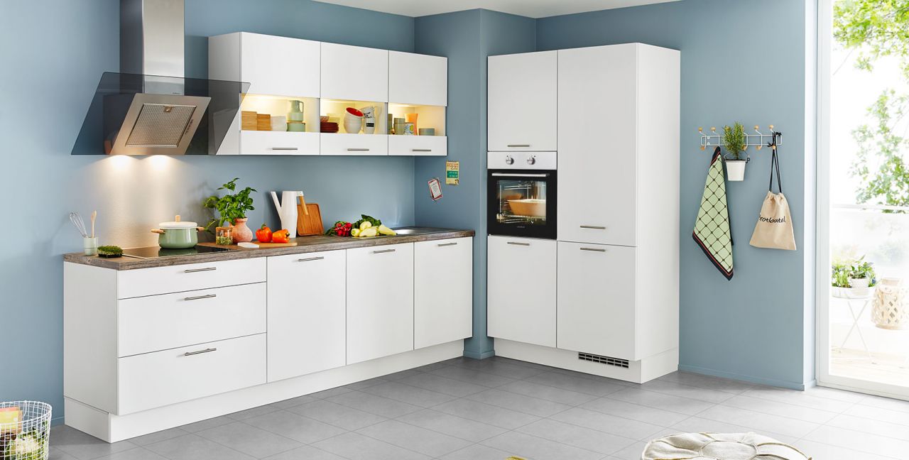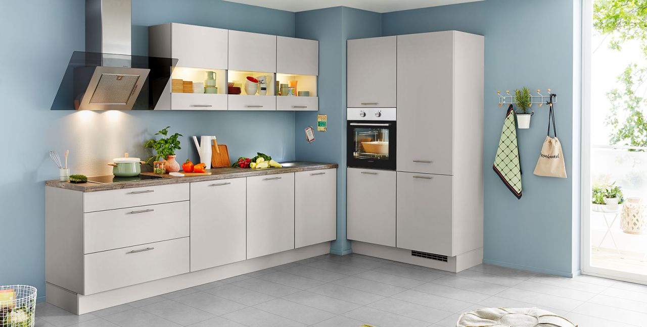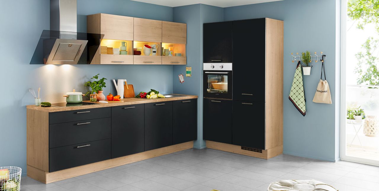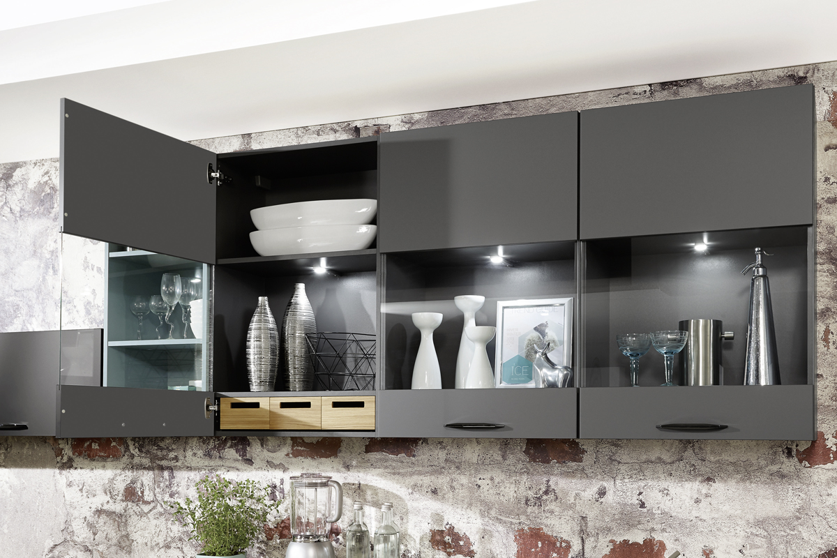 Inklusive Einbaubackofen Edelstahl Laurus LEB3 Energieeffizienzklasse A, Glaskeramik Kochfeld Laurus LCA600, Designesse Edelstahl / Schwarzglas Airforce F134-90 S4 BK Energieeffizienzklasse C, Kühlschrank Laurus LKG88E Energieeffizienzklasse E, Geschirrspüler vollintegriert Laurus LSV60-4 Energieeffizienzklasse E, Einbauspüle Edelstahl Rodi Okio Line 85 Deep, Unterschrank mit Frontauszügen, Wandschränken mit Segmentglastür.